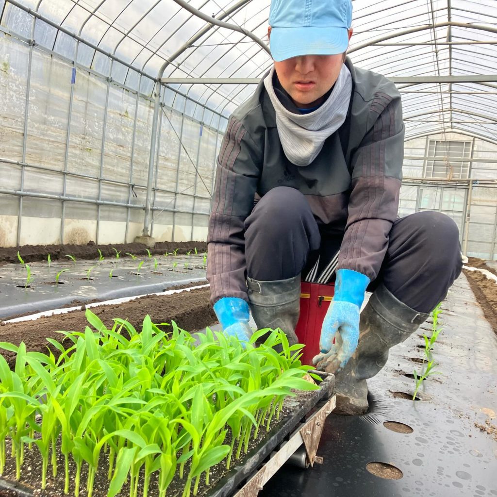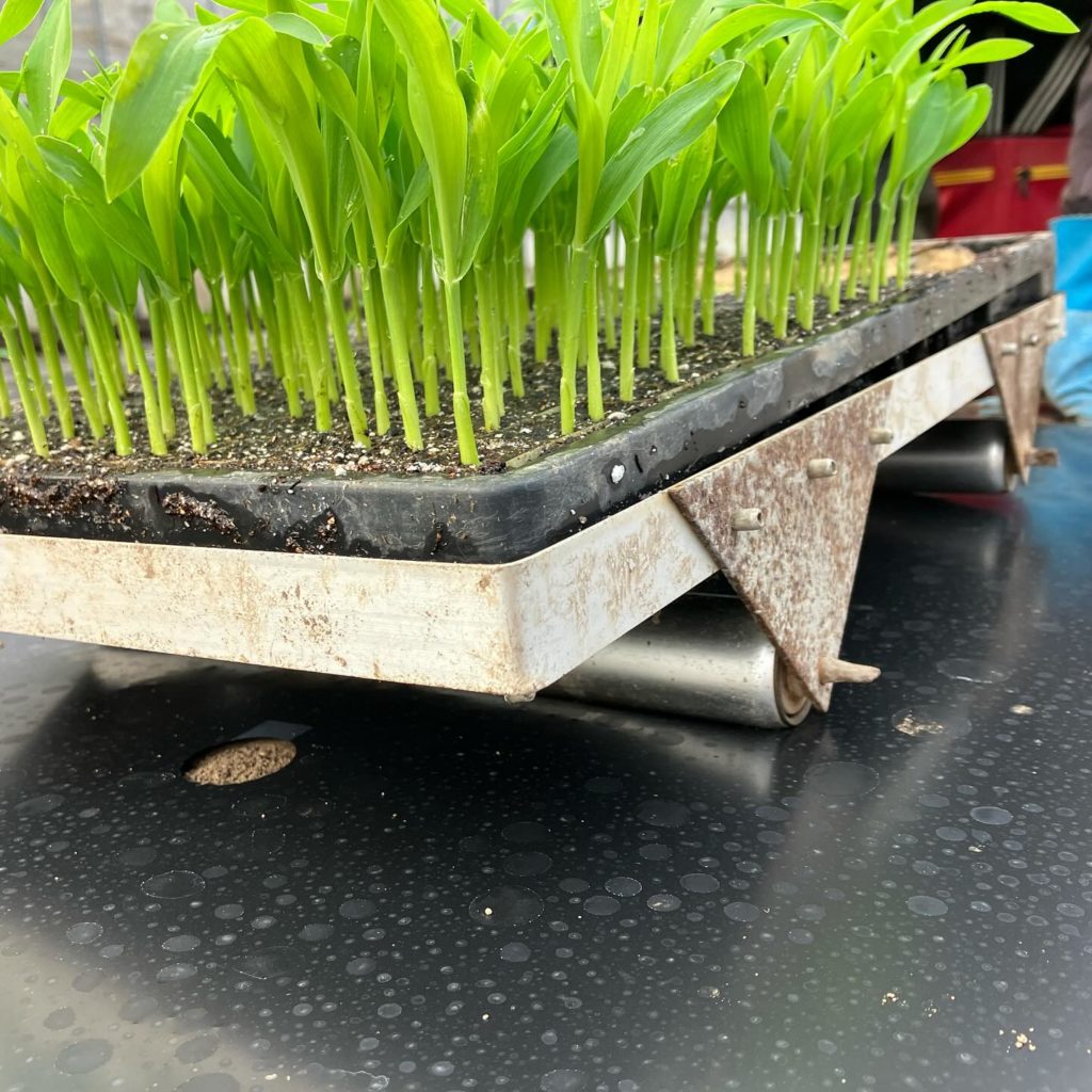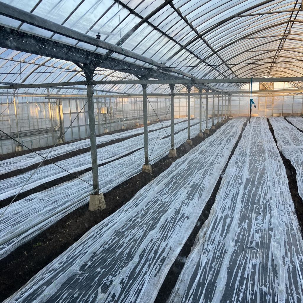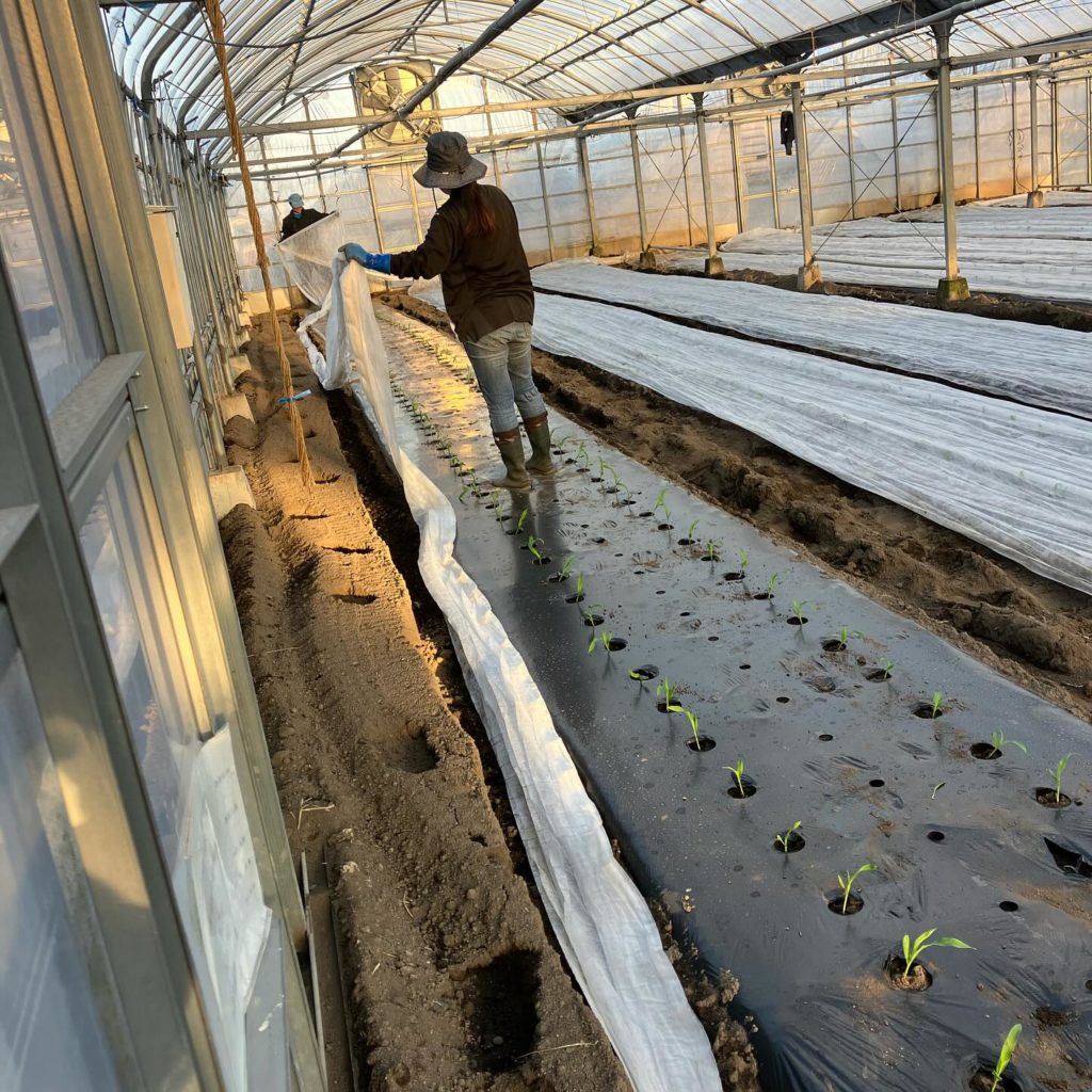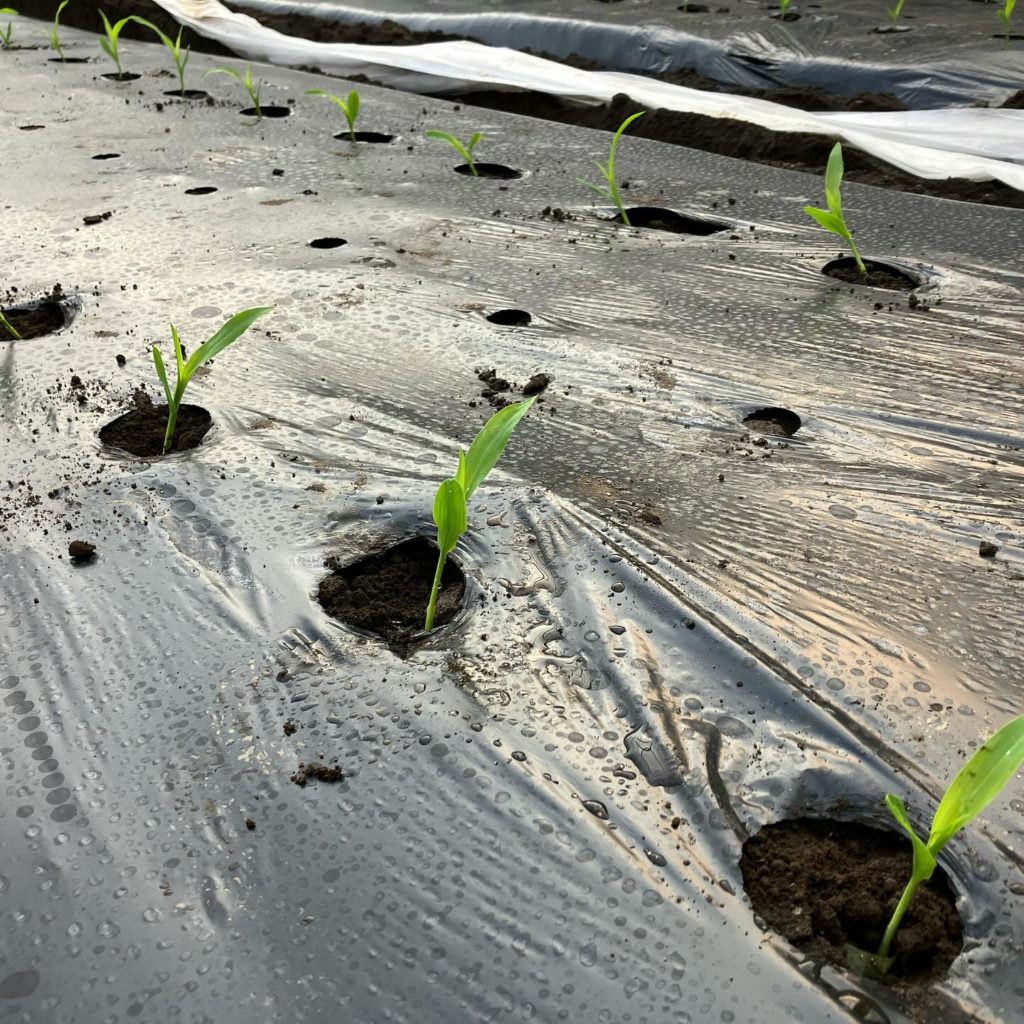 定植🌽してから、霜除けに被覆資材を被せて上から水をかけます☔️