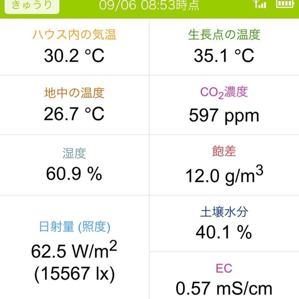 スマホで簡単にハウス内の環境をデータで見る事ができるので、こまめにチェックして栽培管理に活かせそうです✨